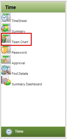 2. The Team Chart opens. This shows the timesheet entries of the supervisor (in this example, 'Raven'), all the employees they supervise, and (because the supervisor chain is set up) all the employees supervised by those employees.